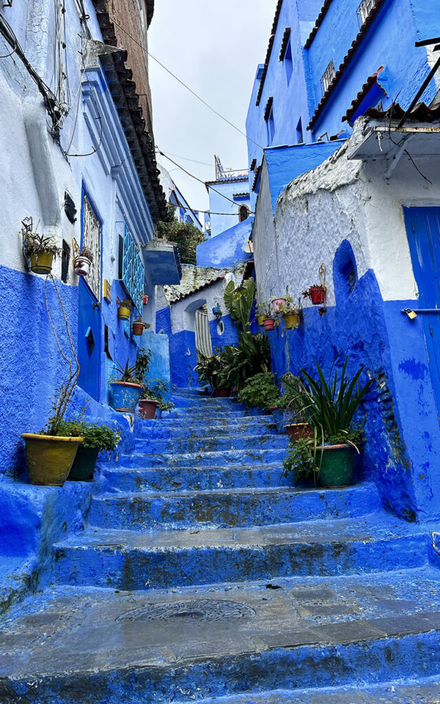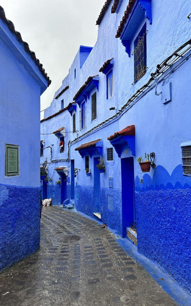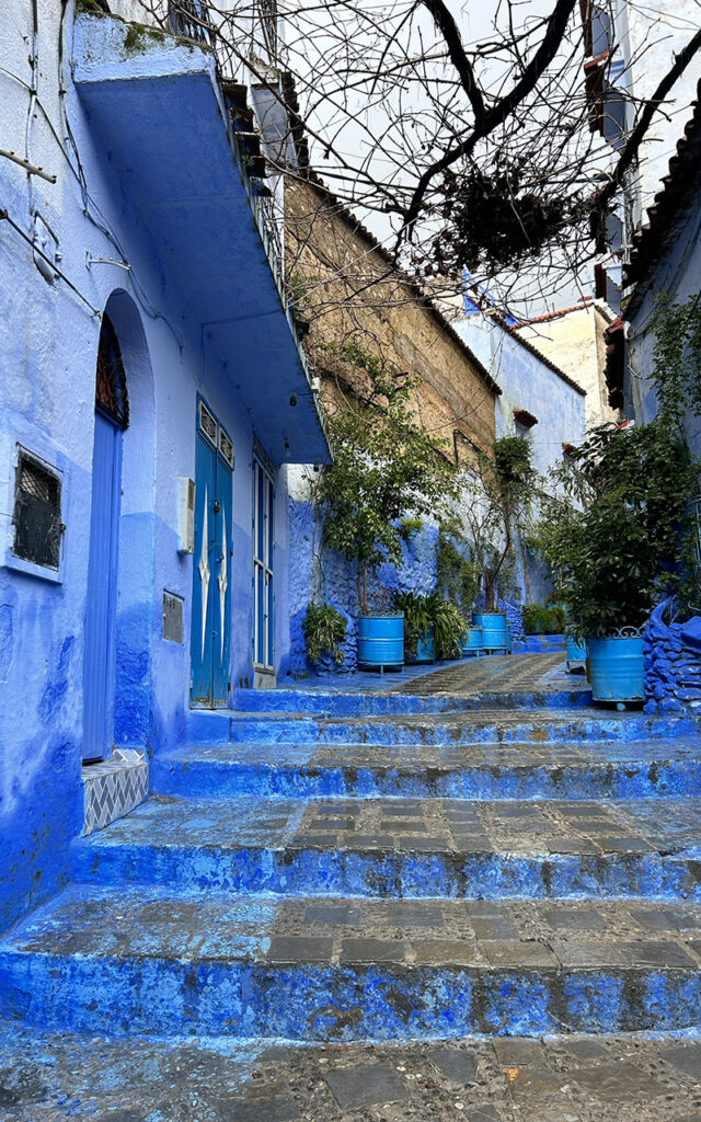 If you arrive in Chefchaouen for the first time, the first feeling is a little unreal. Everything is blue. Walls, stairs, doors, small alleys, flower pots. Sometimes light sky blue, sometimes deep indigo. It almost feels like someone spilled a bucket of paint over the whole town.