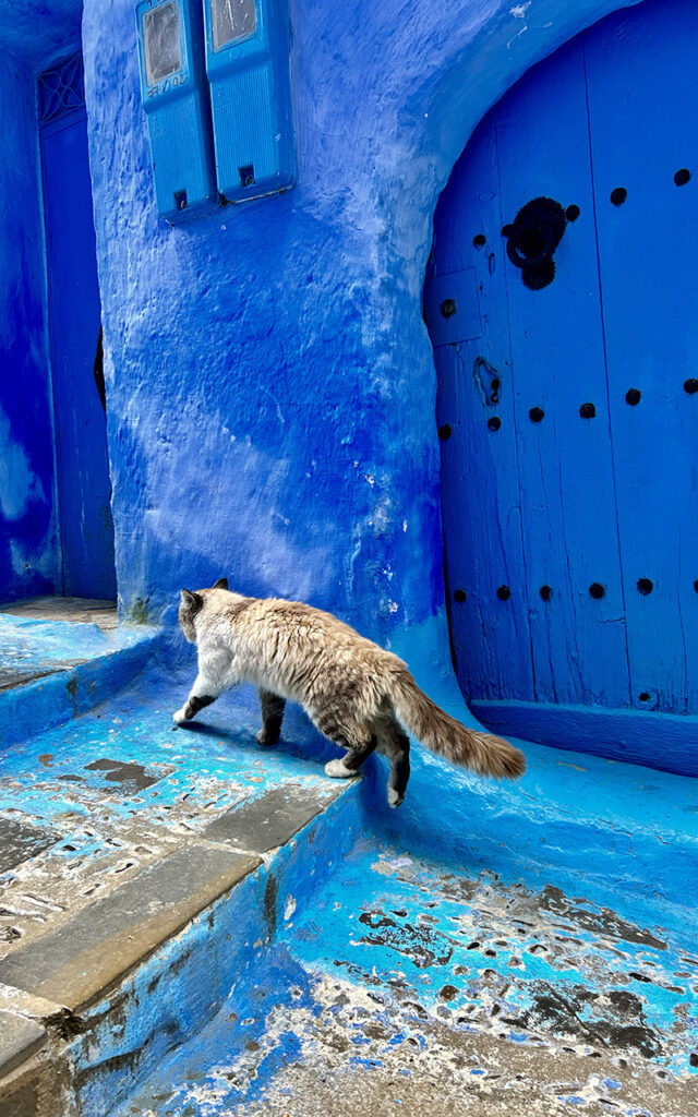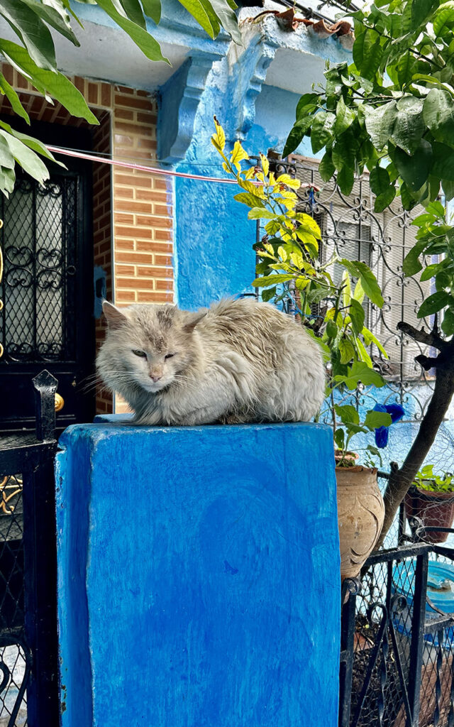 I’ve been to Chefchaouen twice, during two different trips through Morocco, and both times I made sure not to skip it. It’s one of those places that pulls you back. Even though it’s popular with visitors, the town still feels peaceful. Sometimes you turn into a narrow street and suddenly it’s completely quiet – just blue walls, soft mountain light, and maybe a sleepy cat on the steps.
